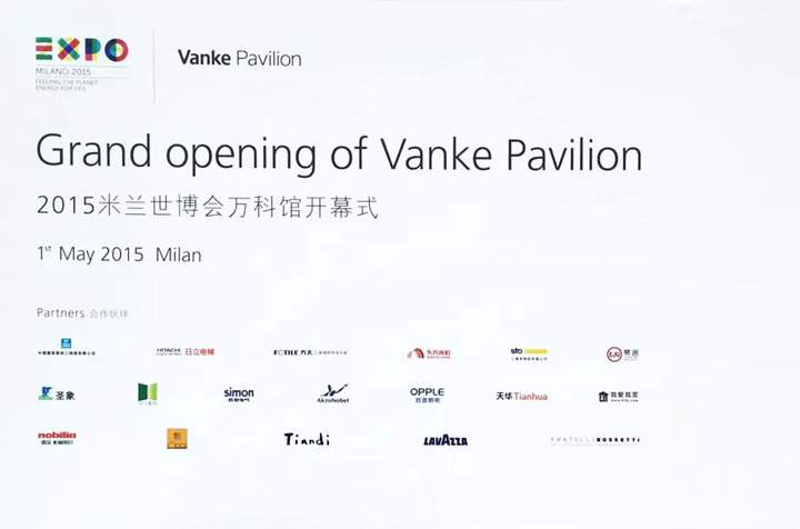 2015年米蘭世博會萬科館開幕式於5月1日在米蘭舉行,澳珀成為萬科館合作夥伴,為米蘭世博會喝彩。