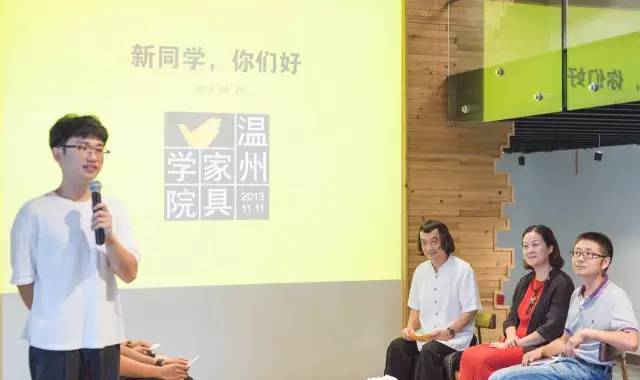 交流會上,院長小杰就溫州傢俱學院實行現代學徒制的教學模式做了一番介紹。融合校企雙重優勢,師傅帶徒弟的教學方式,讓同學們對傢俱學院有了新的認識。