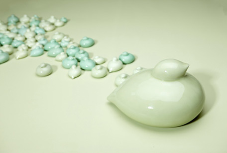 家住瓯江边上,看惯了水鸟的起起落落。挥不去的记忆里有很多美好的联想,《瓯江水鸟》瓯窑作品是第一个写忆。瓯窑在温州有三千五百年以上历史,其与龙泉青瓷有说不尽的血缘,龙泉是头温州是尾,共饮一江瓯水。《瓯江水鸟》运用了龙泉青瓷的工艺,然后融进现代的生活方式与当代的技艺在水鸟的底部设计里金属盖圈,虽小但精致。水鸟釉水圆润如玉,不仅有佐料瓶的功用,把玩掌手随心如意。《瓯江水鸟》的设计不仅是儿时的记忆,也是现代材料与传统文化结合一种新的用意与尝试。
