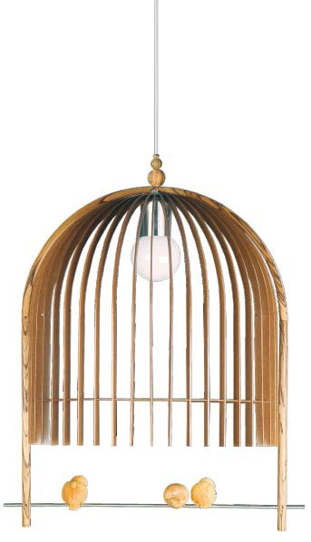 安分守己,平和地生活在属于自己的范围里,这是我们祖先一直强调的。这是一种心境,世界的动荡不安,世界有些不太美好的事物产生也许缺乏这种心态,我想让这只小鸟来表达这种思想蛮合适,于是我做了一个鸟笼灯。