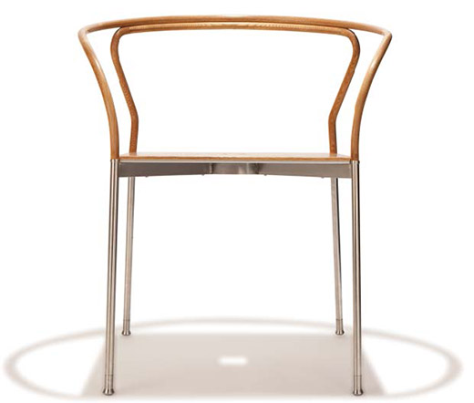 这把钱椅的外型表达了一个哲学思想,其还以中国传统家具为原点,用寥寥几笔将明式圈椅的精神勾勒出来。纤细的实木扶手与坐面在闪闪发亮的金属材料衬托下,如同稳稳站在那里仙峰道骨的道者。