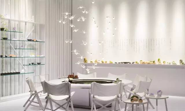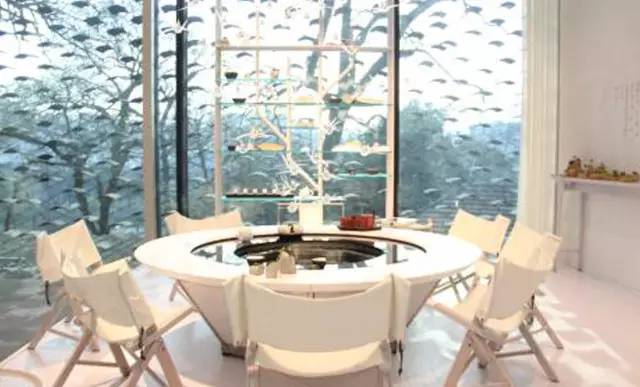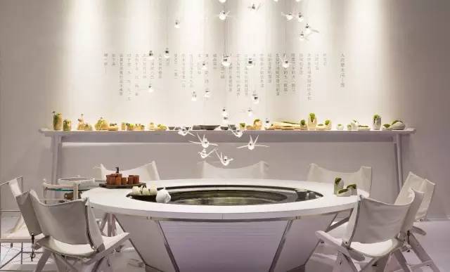 在青瓦房裡的流水桌旁