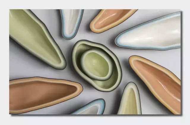 將不同色彩的陶土層層相迭