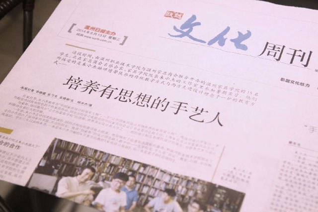 這段時間,由溫州職業技術學院與溫州傢俱商會聯合開辦的溫州傢俱學院的15名學生,正在傢俱商會名譽會長、傢俱學院院長朱小傑的工作室裡參加暑期實習。他們所接受的是朱小傑融師傅帶徒弟的傳統教學方式與西方先進設計理念於一爐的教育方式。