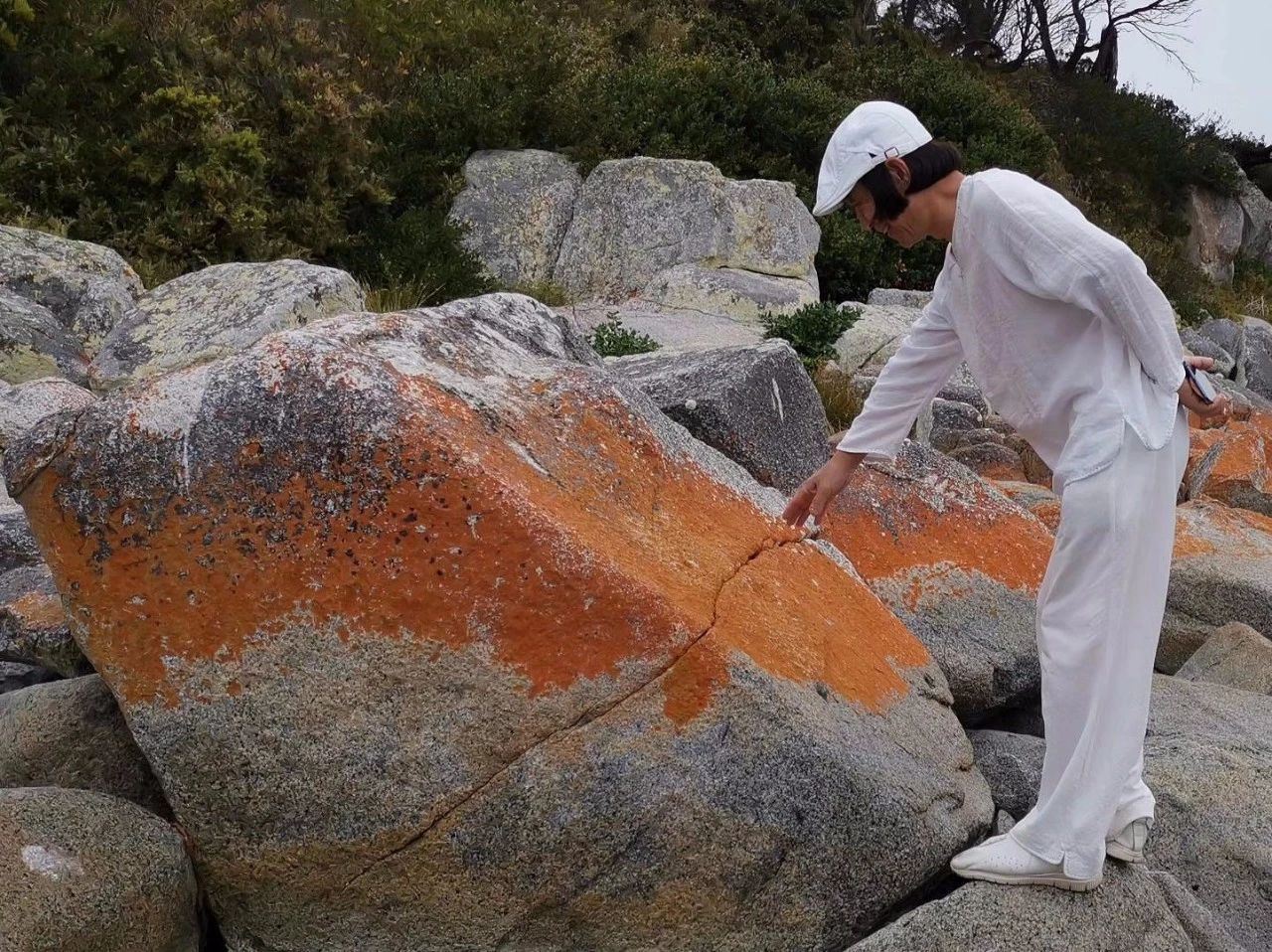 沙白 石紅 柔軟隨著堅強 自然永恆且神奇 岩石 在潔白幼細的沙灘裡 火般地燃燒 火焰灣延綿長長 沙真的好白好柔 岩實在好紅好堅 海藻和真菌共棲 岩石穿上了紅衣 自然奧妙 火焰灣並不因岩石火紅 好久好久 英國航海家發現 原住民在田野裡刀耕火種 便有了Fire of Bay 也許不是 也許勾起了他火紅的記憶 2020.01.15.隨筆.小杰.塔斯馬尼亞