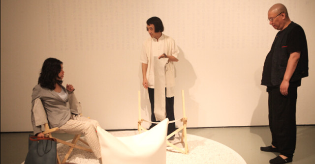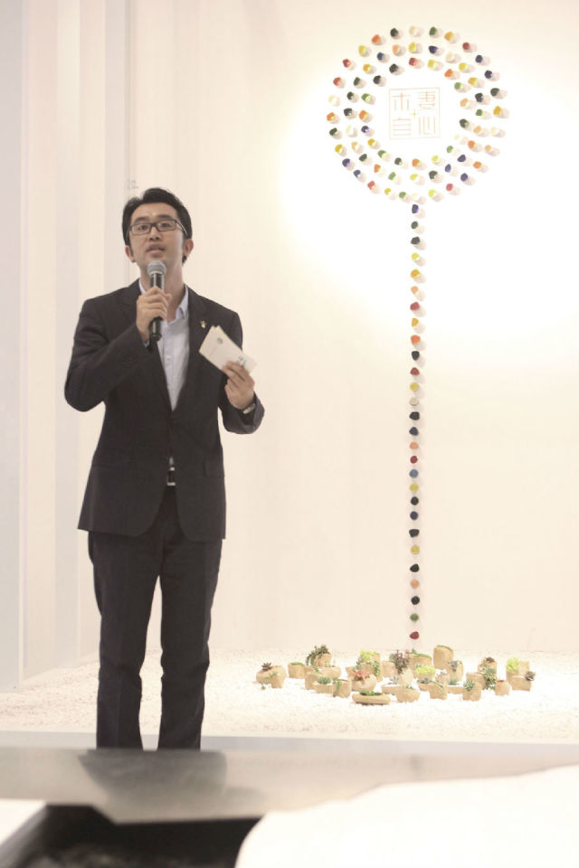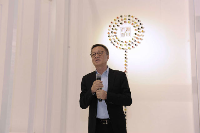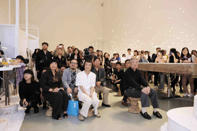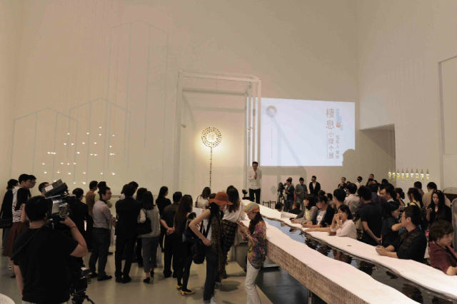 小石子鋪著展覽廳的邊沿,燕子燈點綴著全場,一室明媚;水聲起起落落,幾位老師散落著坐在木凳上侃侃而談,眾人聚精會神地圍著,不時地有掌聲響起,也在掌聲中開幕式圓滿結束。