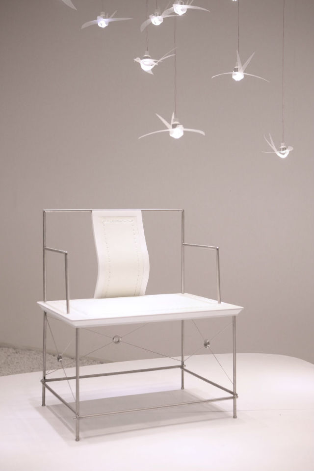 此次展覽以白色為主基調,共分六個部分,分別為丹麥、荷蘭、義大利、香港、學校和故鄉。展覽彙聚了小杰老師不同時期的代表作,有傢俱、皮草、陶瓷、鄉酒以及裝置等設計作品。