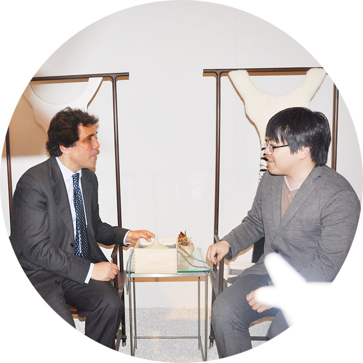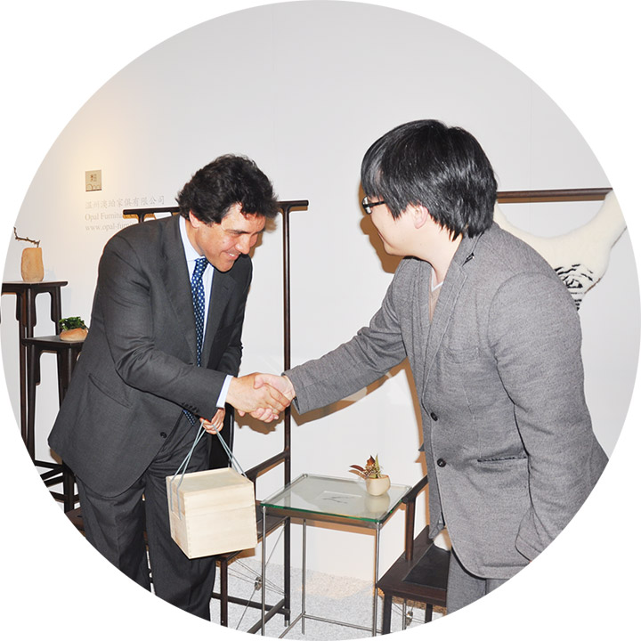 2015年4月14日,『坐下來』在米蘭開幕,米蘭副市長Pasquale Maria Cioffi親臨展覽現場,與出品人車建芳女士在澳珀展區坐下來,他說坐下來讓米蘭設計周看見中國設計。